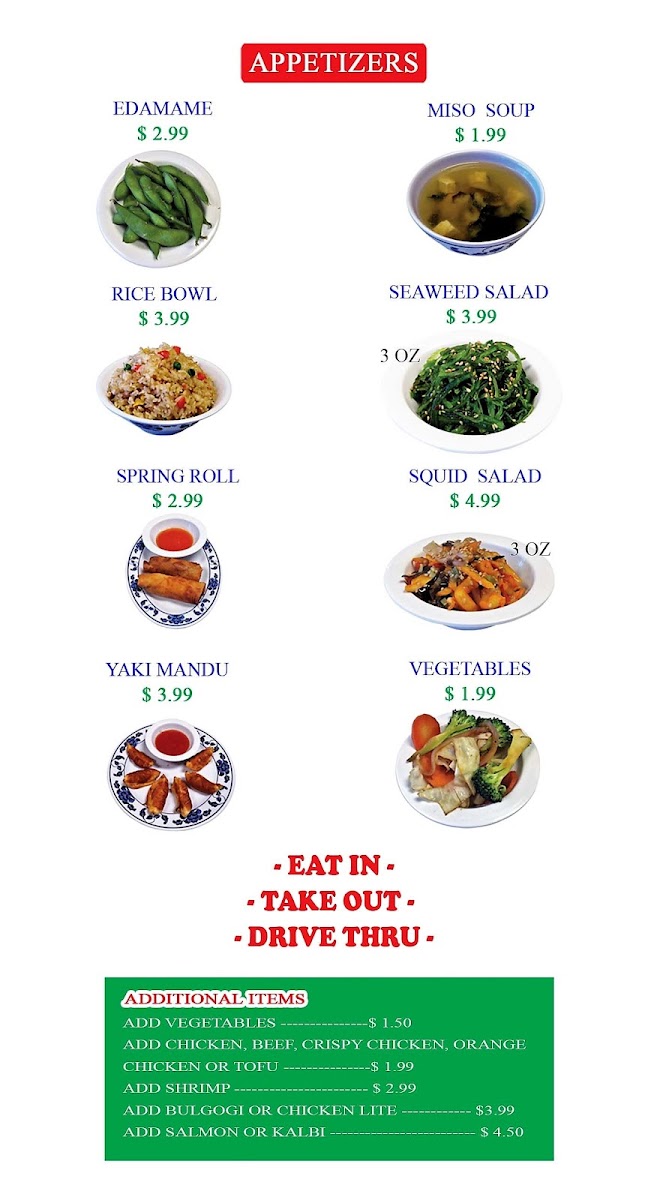You’ll find a variety of options that cater to every taste, from tender grilled meats and seafood to perfectly seasoned vegetables, all served with a side of steamed rice. The sushi, made with the finest ingredients, is a highlight of the menu, offering both traditional favorites and unique, inventive creations. Every bite delivers a satisfying burst of flavor, making it the perfect spot for any sushi lover or anyone craving a warm, comforting meal. Whether you’re stopping by for a quick bite or a relaxing meal with friends, the menu is designed to cater to all appetites and preferences.